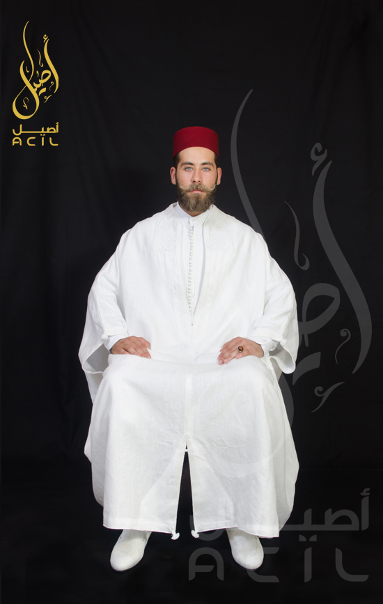 Jebba ( Surplis ) Blanche en Pur Lin Naturel avec Ruban Blanc Fait à la Main et broderie en Soie à la Main en relief.